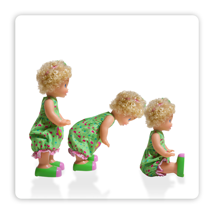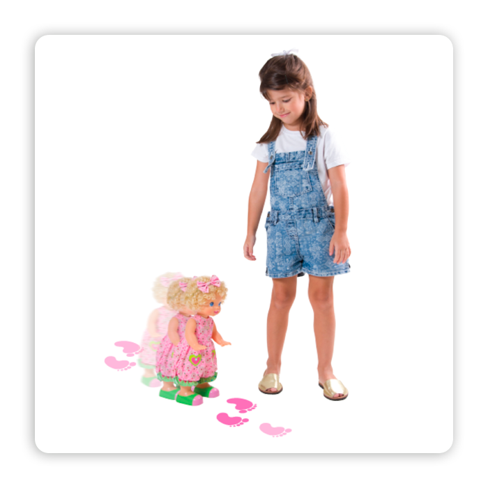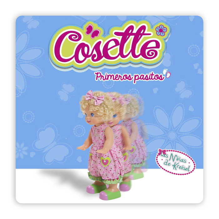 ¡Cosette aprendió a caminar y le encanta cantar mientras camina! Ella puede caminar sola, pero a veces pedirá tu ayuda. Puedes caminar con ella, agarrándole una o ambas manitos. Si está sentada, puedes levantar sus bracitos y ella se parará sola. Si está muy cansadita, se volverá a sentar y te pedirá su jugo o que cantes con ella. Canta varias canciones, ¡y algunas son canciones propias de Cosette!